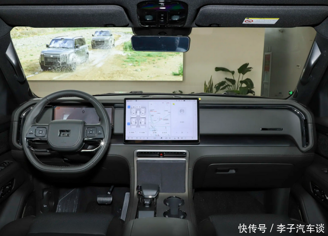 从极石01侧面看,车顶线条平平直直的,这样车里的头部空间就比较的宽敞。后排装了隐私玻璃,既保护了隐私,又让车子显得更高档。它用的是传统门把手,不像有些车,一到冬天冷得结冰,门把手都弹不出来。前后翼子板微微鼓起来,配上那大尺寸的轮毂,肌肉感较强。车身侧面还有粗壮的熏黑装饰件和车顶行李架,让越野风格比较的明显。这车身尺寸不小,又长又宽又高,轴距也挺长,在中大型SUV里比较的突出,不仅让车内空间比较的宽敞,从外面看也显得比较大气稳重。