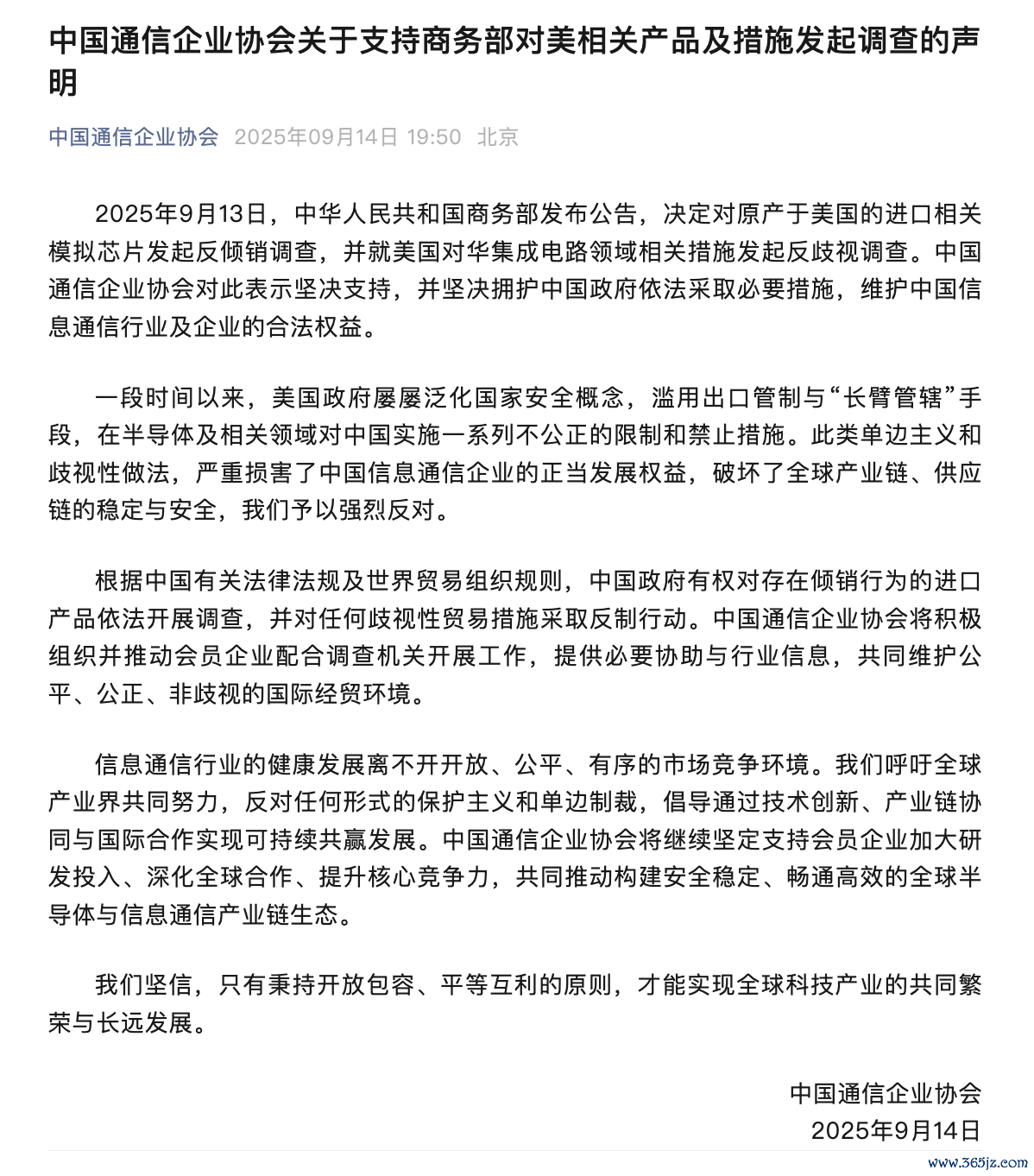 中国通信企业协会:支持商务部对美相关产品及措施发起调查中国通信企业协会:支持商务部对美相关产品及措施发起调查