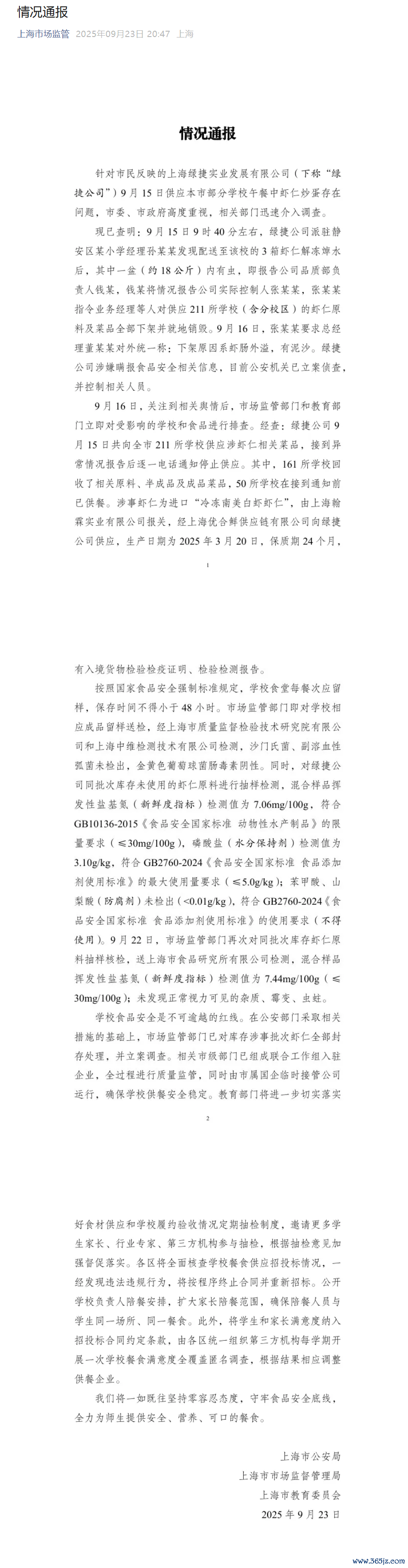 三部门通报“部分学校午餐虾仁炒蛋存在问题”调查情况三部门通报“部分学校午餐虾仁炒蛋存在问题”调查情况