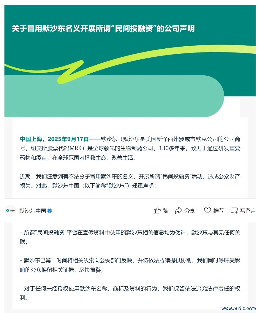 默沙东中国:未曾也不会在任何市场以任何形式开展面向公众的民间投融资类活动默沙东中国:未曾也不会在任何市场以任何形式开展面向公众的民间投融资类活动